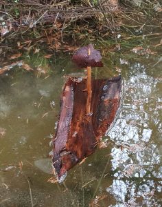 Vi var på scoututfärd till Emsalö 1-2.4. Vi lekte och sjöng vid lägerelden och stekte marshmallows. På söndagen fick vi pröva på att använda såg, yxa och täljkniv. I skogen var marken isig.