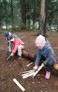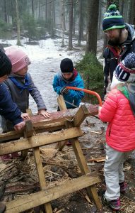 Harjoitellaan puukon käyttöä ja vuollaan sytykkeitä